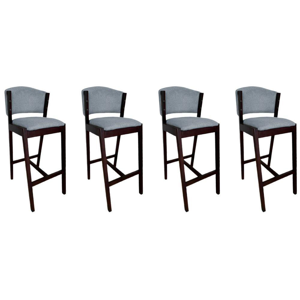 Kit 4 Banquetas Altas De Madeira Maciça Ana Em Linho Premium Cinza Linho Castanho