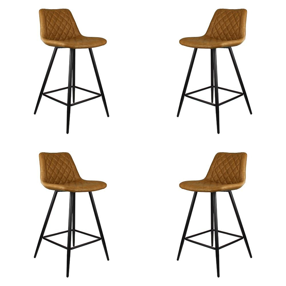 Kit 4 Banquetas Decorativas Magé PU Matelassê c/Apoio para os Pés Base em Aço Marrom G56 - Gran Belo