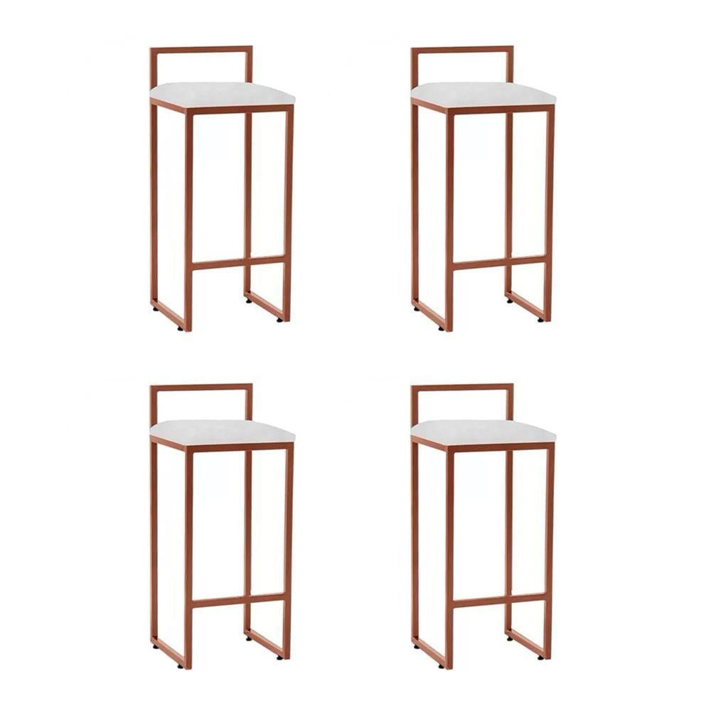 Kit 4 Banquetas Dori Premium Alta Industrial Para Bar Cozinha Bistrô Em Aço - Cobre-branco