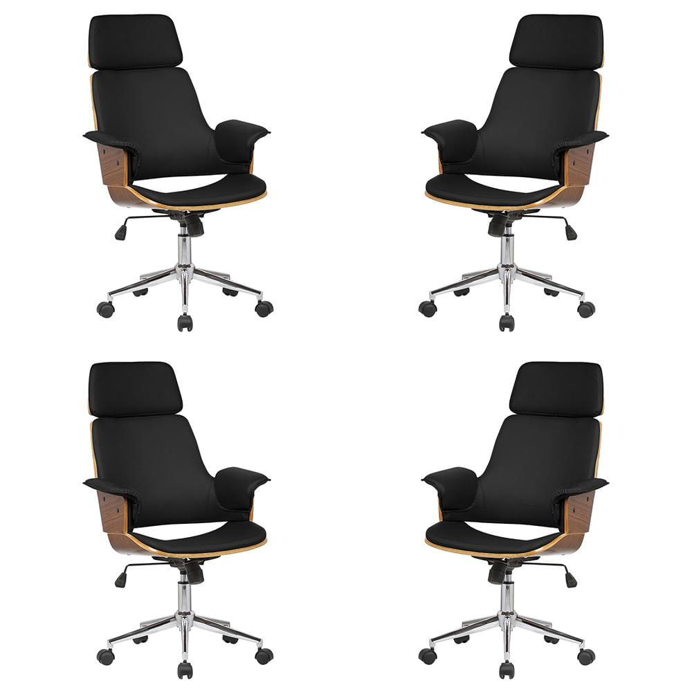 Kit 4 Cadeira de Escritório Home Office Decorativas Casemiro PU c/Regulagem de Altura Base Giratória Preto G56 - Gran Belo