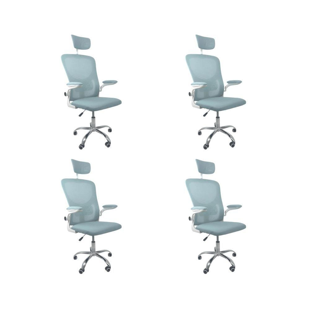 Kit 4 Cadeiras De Escritório Diretor Oficial Vegas Com Apoio Azul E Branco