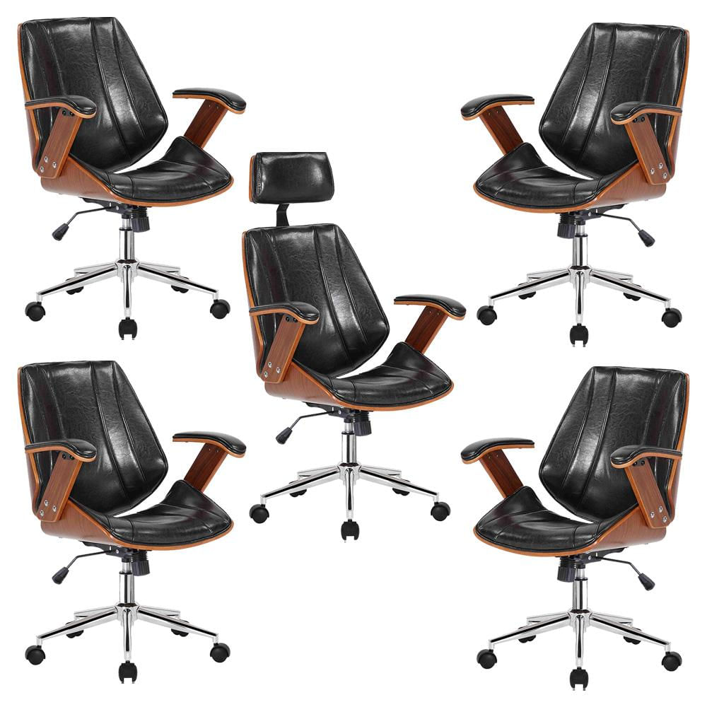 Kit 4 Cadeiras de Escritório Juliette Diretor e 1 Presidente Giratórias Preta - Gran Belo
