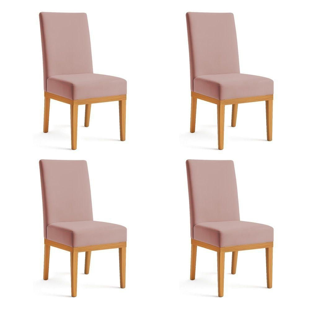 Kit 4 Cadeiras De Jantar Brisa Veludo Base De Madeira - Pallazio Cor Rosê