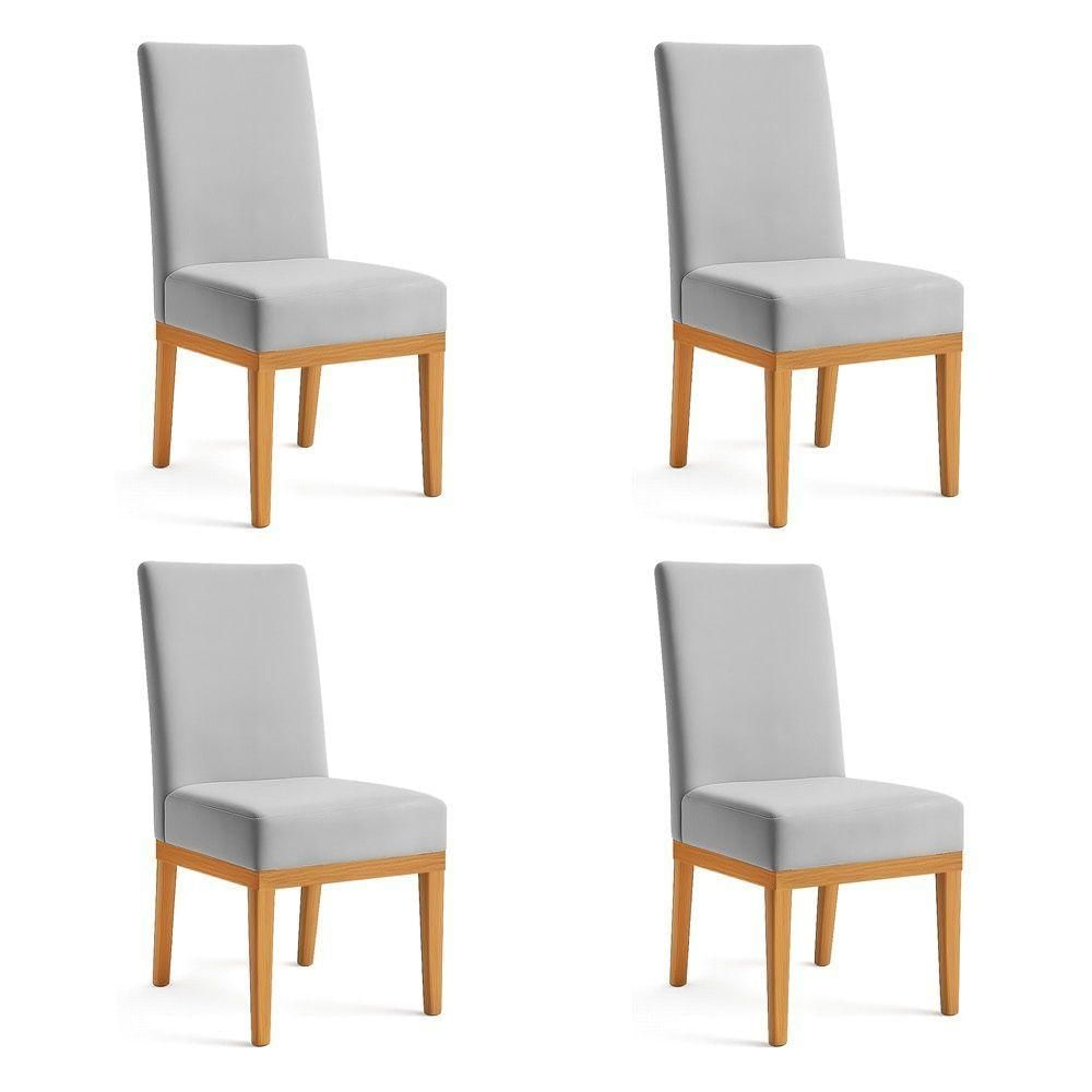 Kit 4 Cadeiras De Jantar Brisa Veludo Cinza Base De Madeira - Pallazio