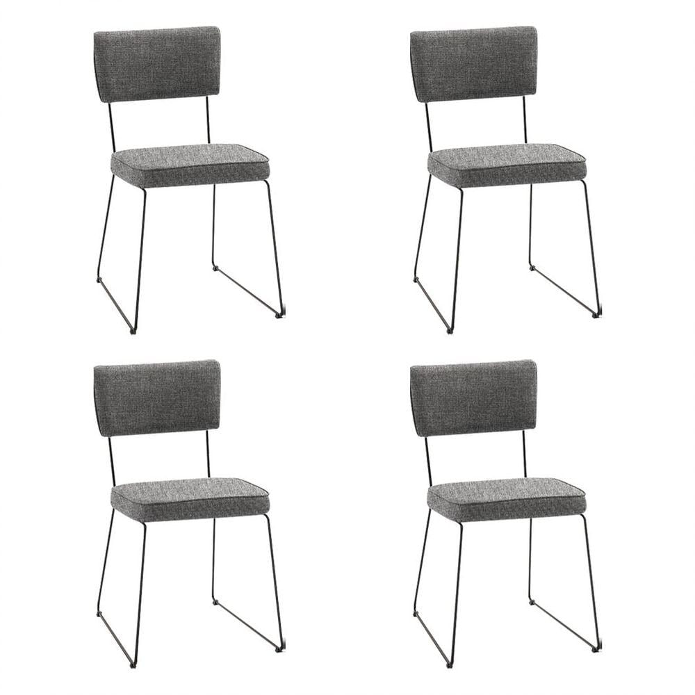 Kit 4 Cadeiras De Jantar Decorativa Base Aço Preto Luigi Linho Cinza - Gran Belo
