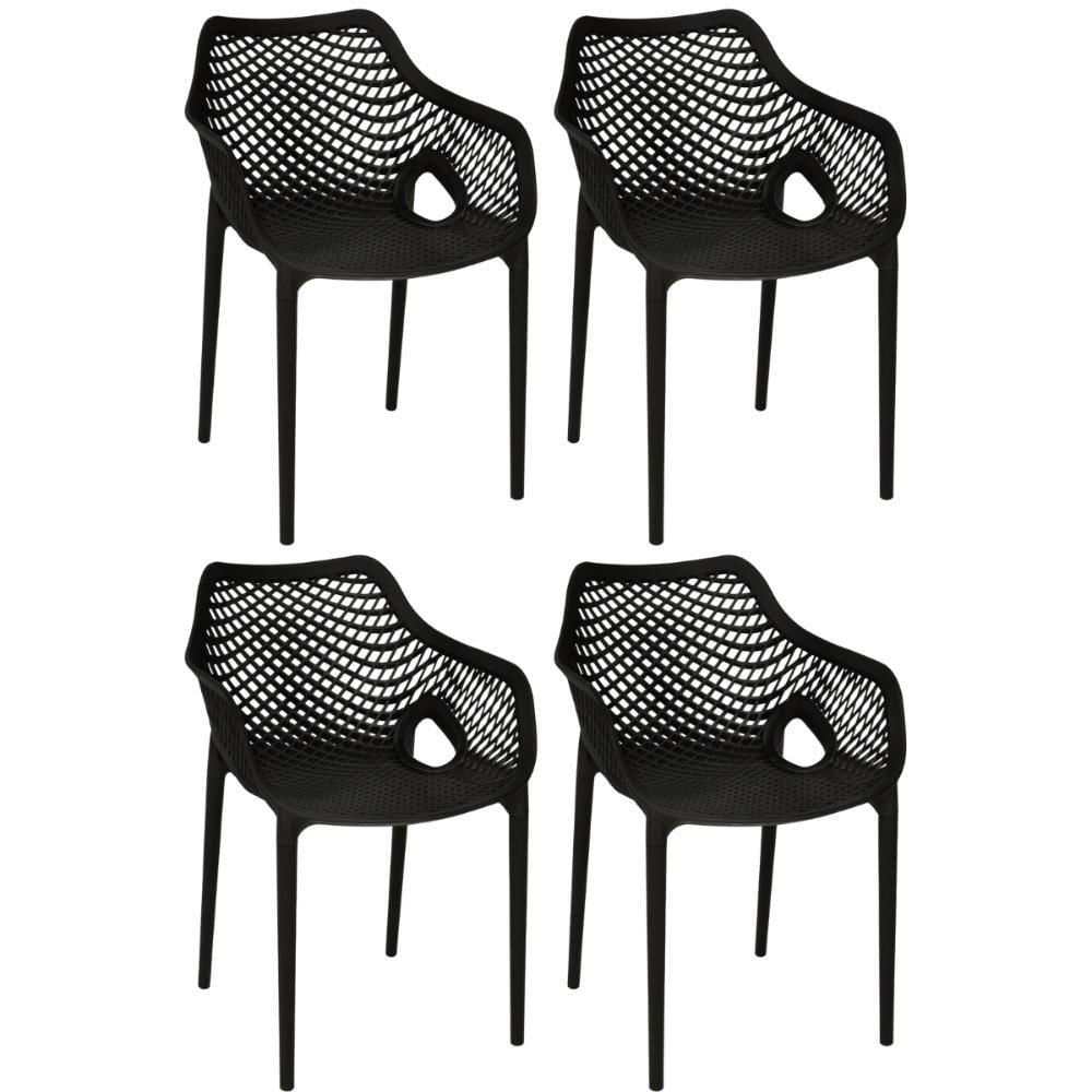 Kit 4 Cadeiras De Jantar Design Suits Com Braços Empilhável Em Polipropileno - Preto