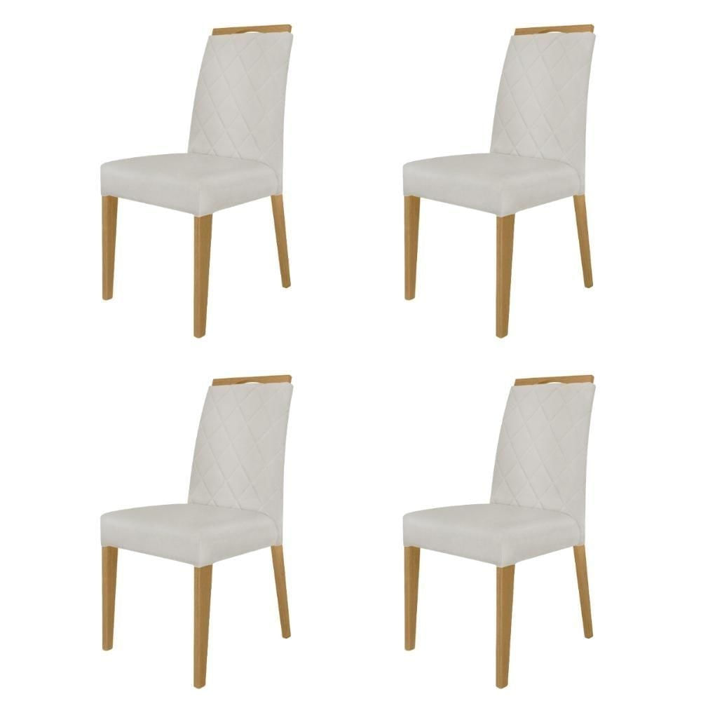 Kit 4 Cadeiras De Jantar Estofadas Madeira Maciça Multimóveis Cr15020 Madeirado-Bege