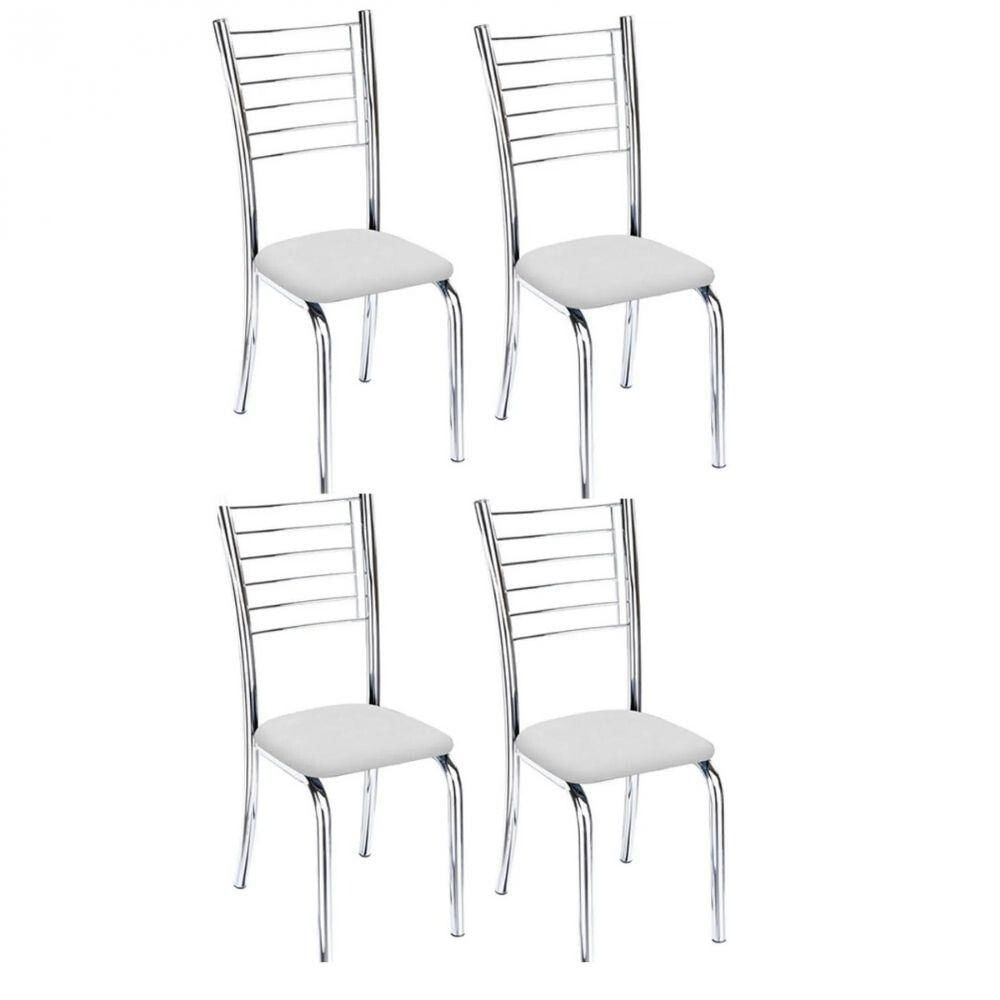 Kit 4 Cadeiras De Jantar Lara Cromada Para Cozinha Assento Sintético Branco - Aurora Line