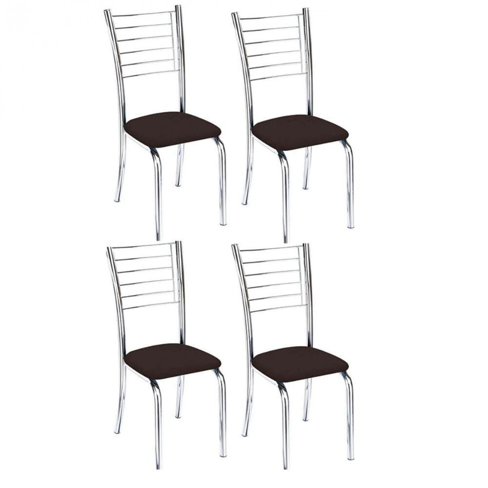 Kit 4 Cadeiras De Jantar Lara Cromada Para Cozinha Assento Sintético Marrom - Aurora Line