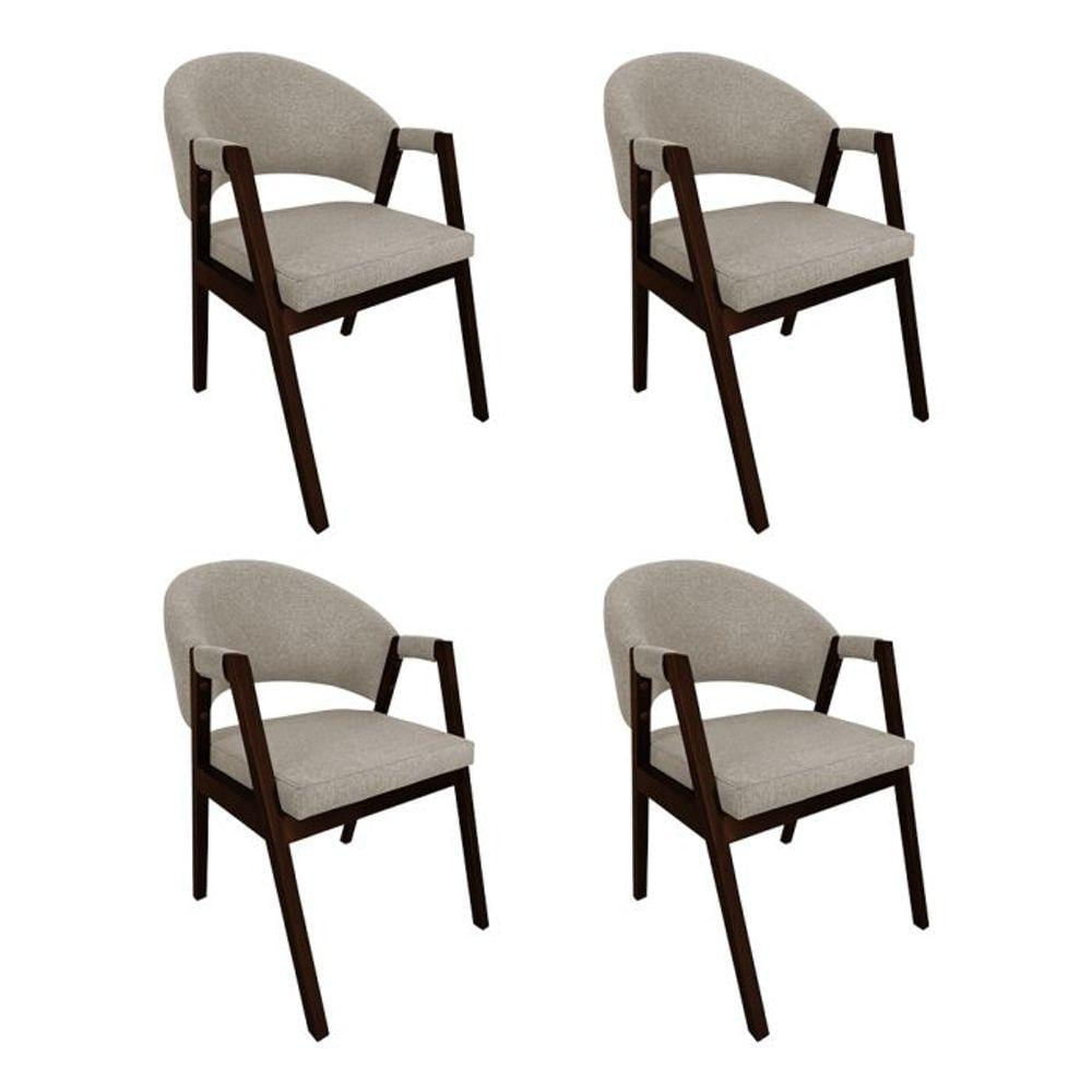 Kit 4 Cadeiras De Jantar Madeira Maciça Helen Impermeável Castanho Bege Linho