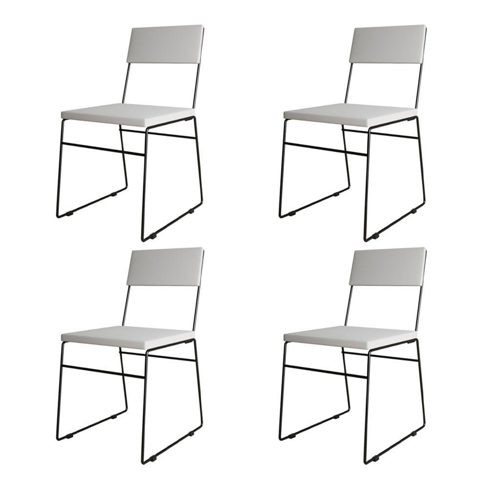 Kit 4 Cadeiras De Jantar Málaga Corino Base Preto Para Mesa Sala Cozinha Conforto - Preto-branco