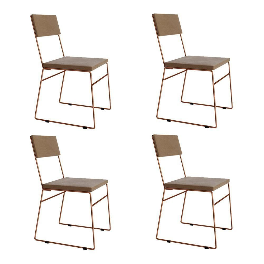 Kit 4 Cadeiras De Jantar Málaga Veludo Base Cobre Para Mesa Sala Cozinha E Decor - Cobre-marrom