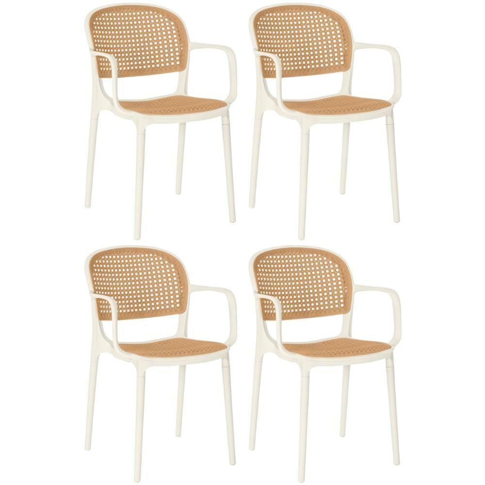 Kit 4 Cadeiras De Jantar Roma Prática Com Braços Para Sala E Cozinha - Bege