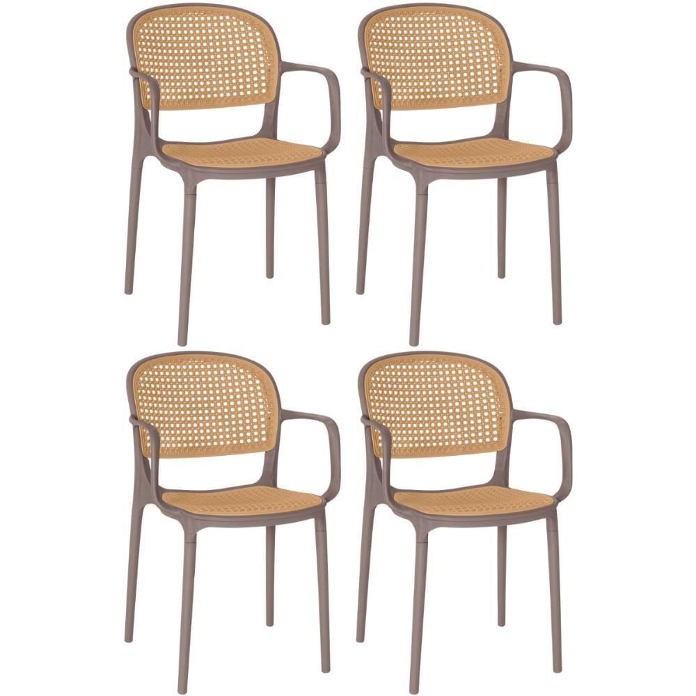 Kit 4 Cadeiras De Jantar Roma Prática Com Braços Para Sala E Cozinha - Marrom Claro