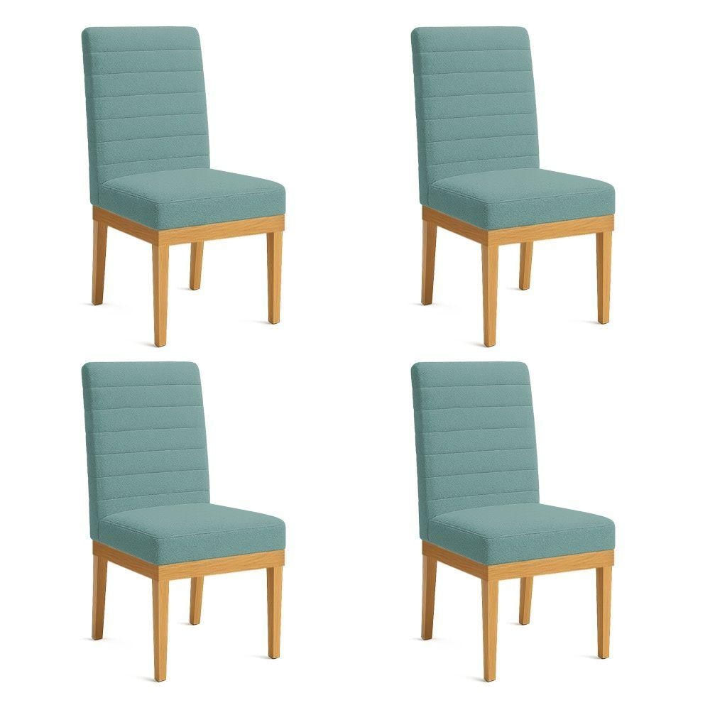 Kit 4 Cadeiras De Jantar Solana Boucle Base De Madeira - Pallazio Cor Azul Majestic