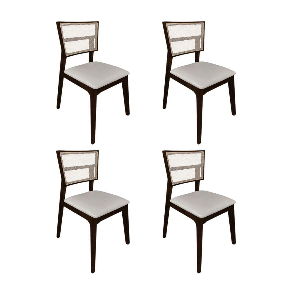 Kit 4 Cadeiras De Jantar Tela Premium Madeira Maciça Manuela Bege Veludo Castanho