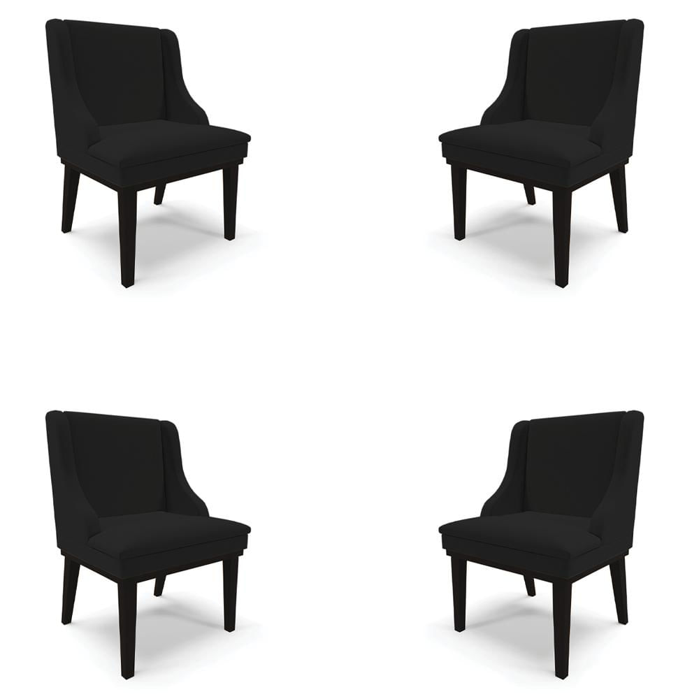 Kit 4 Cadeiras Decorativas Sala de Jantar Base Fixa de Madeira Firenze Linho Preto G19 - Gran Belo
