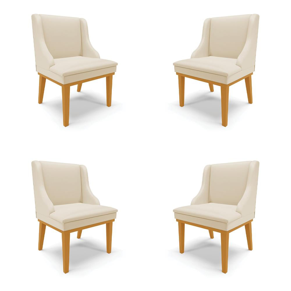 Kit 4 Cadeiras Decorativas Sala de Jantar Base Fixa de Madeira Firenze PU Bege/Castanho G19 - Gran Belo