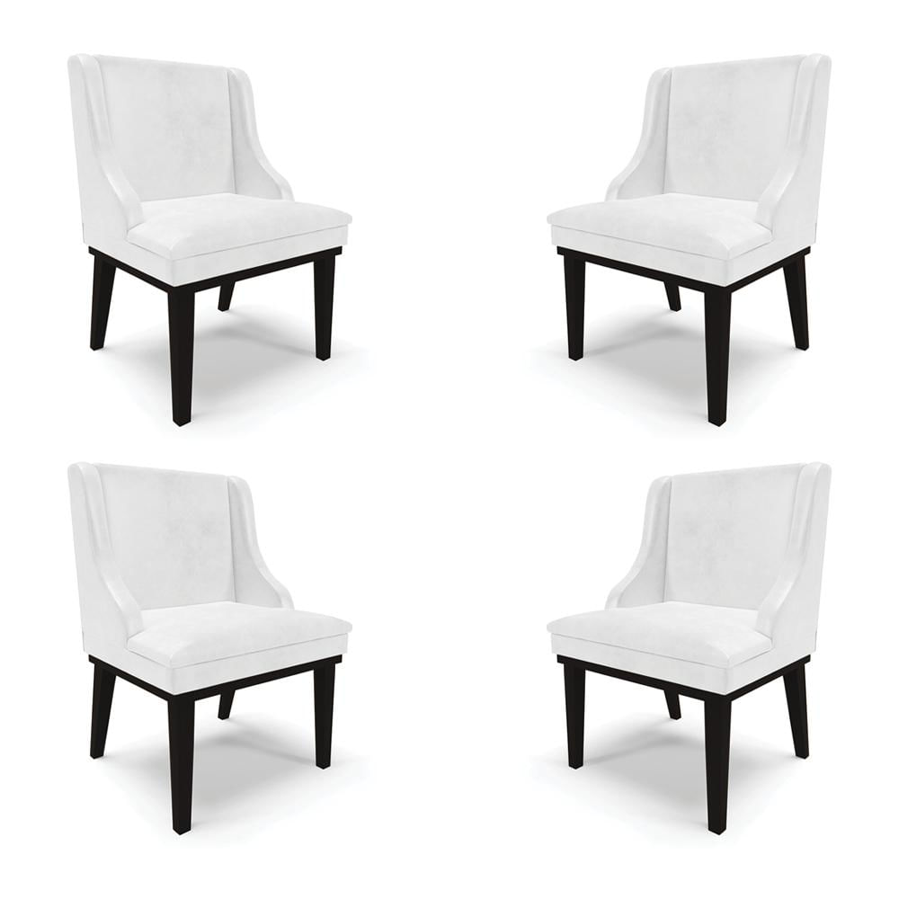 Kit 4 Cadeiras Decorativas Sala de Jantar Base Fixa de Madeira Firenze PU Branco Brilho/Preto G19 - Gran Belo