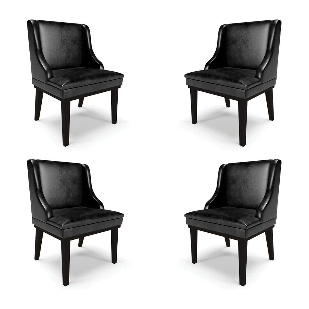 Kit 4 Cadeiras Decorativas Sala de Jantar Base Fixa de Madeira Firenze PU Preto Brilho G19 - Gran Belo
