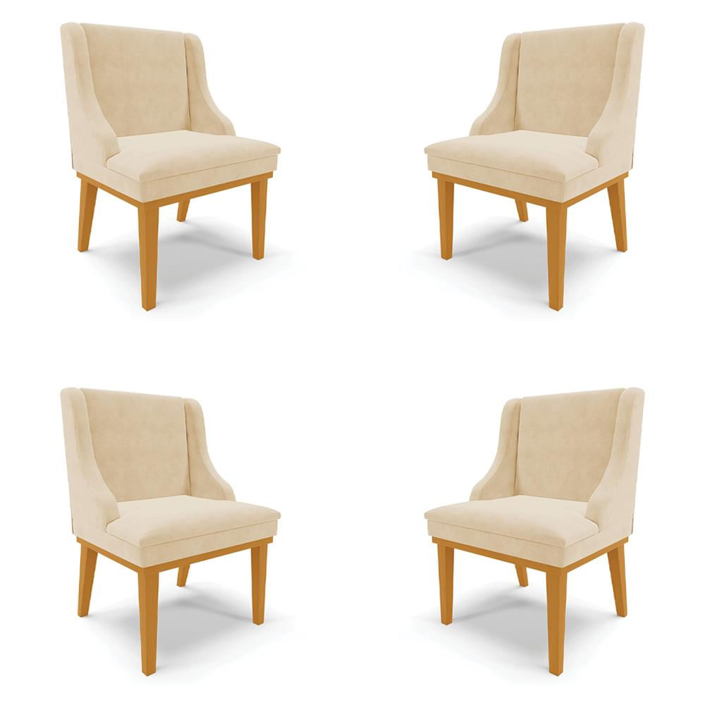 Kit 4 Cadeiras Decorativas Sala de Jantar Base Fixa de Madeira Firenze Suede Bege/Castanho G19 - Gran Belo