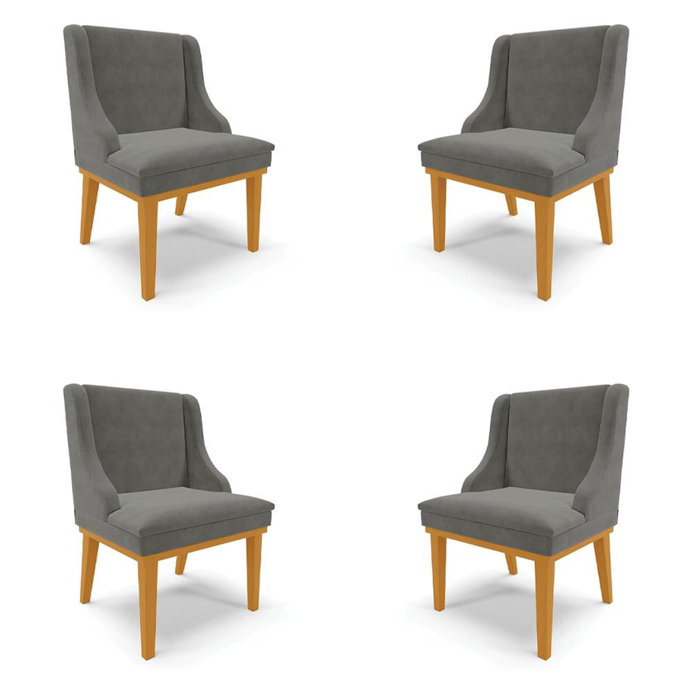 Kit 4 Cadeiras Decorativas Sala de Jantar Base Fixa de Madeira Firenze Suede Grafite/Castanho G19 - Gran Belo