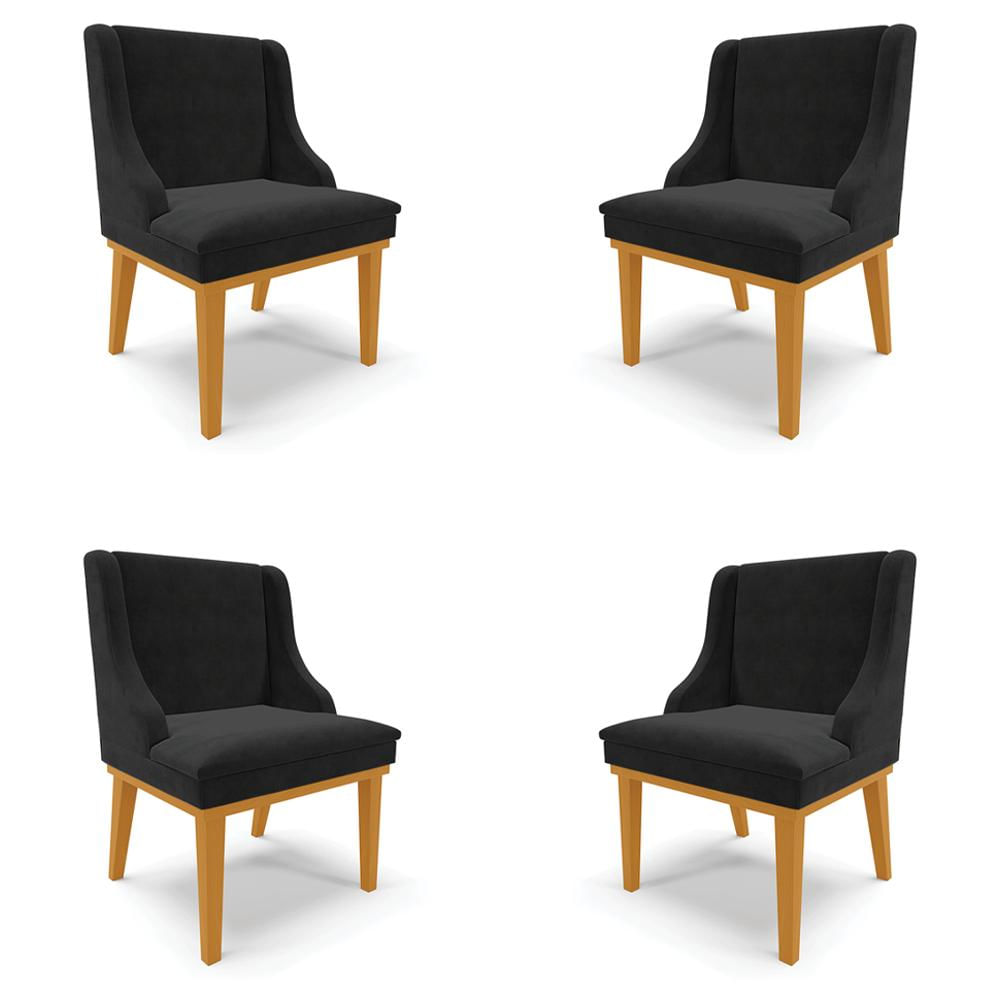 Kit 4 Cadeiras Decorativas Sala de Jantar Base Fixa de Madeira Firenze Suede Preto/Castanho G19 - Gran Belo