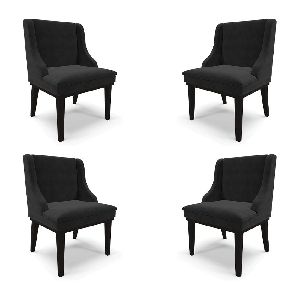 Kit 4 Cadeiras Decorativas Sala de Jantar Base Fixa de Madeira Firenze Suede Preto G19 - Gran Belo