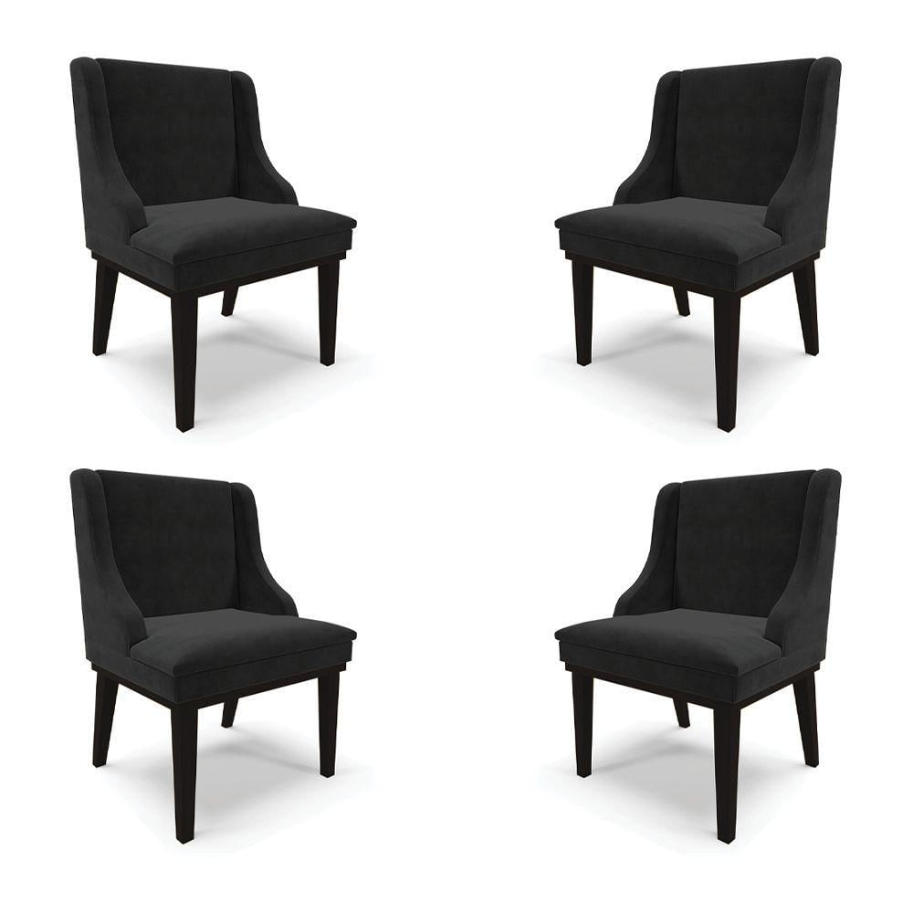 Kit 4 Cadeiras Decorativas Sala De Jantar Base Fixa De Madeira Firenze Suede Preto G19 - Gran Belo