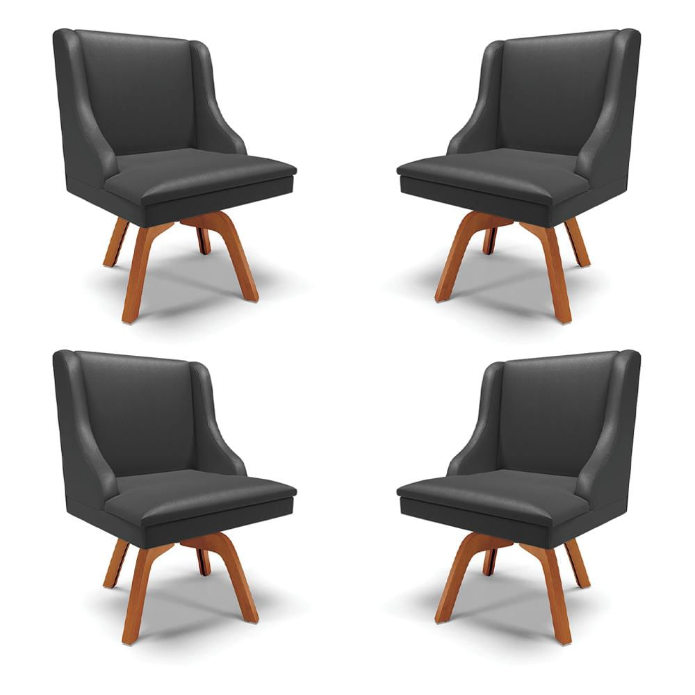Kit 4 Cadeiras Decorativas Sala de Jantar Base Giratória de Madeira Firenze PU Preto Fosco/Natural G19 - Gran Belo