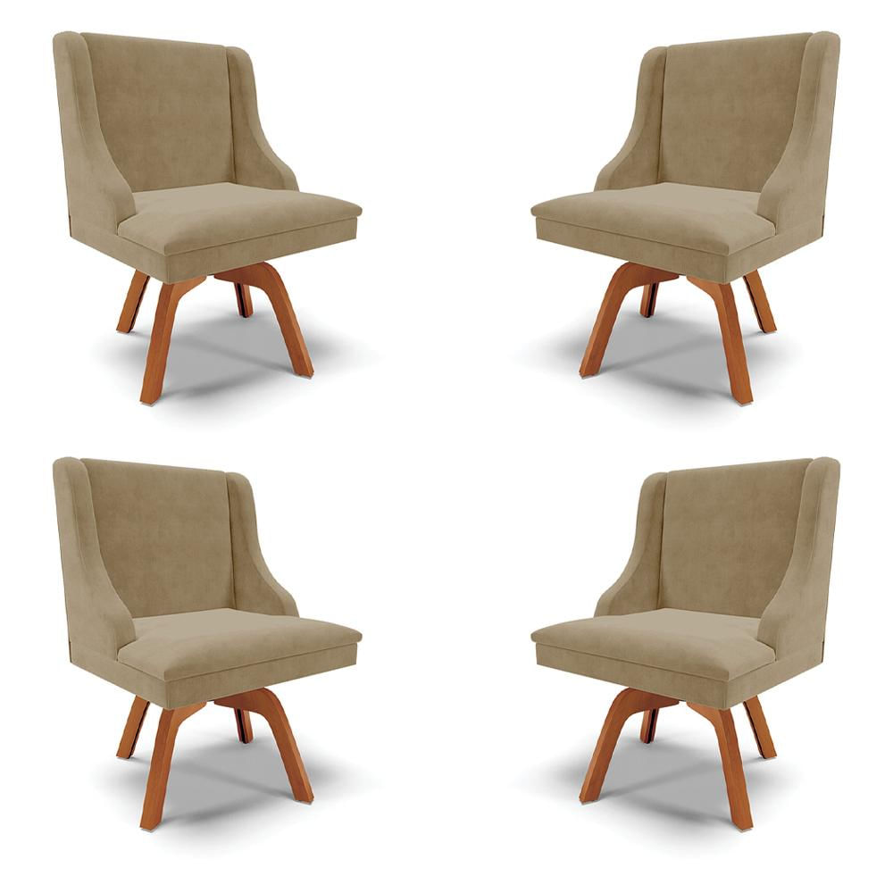 Kit 4 Cadeiras Decorativas Sala de Jantar Base Giratória de Madeira Firenze Suede Nude/Natural G19 - Gran Belo