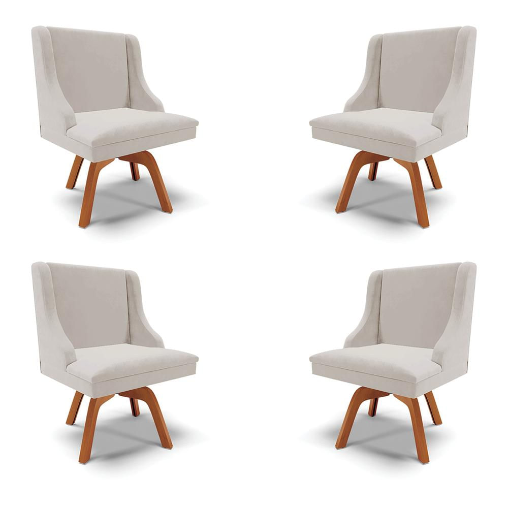 Kit 4 Cadeiras Decorativas Sala de Jantar Base Giratória de Madeira Firenze Veludo Cinza/Natural G19 - Gran Belo