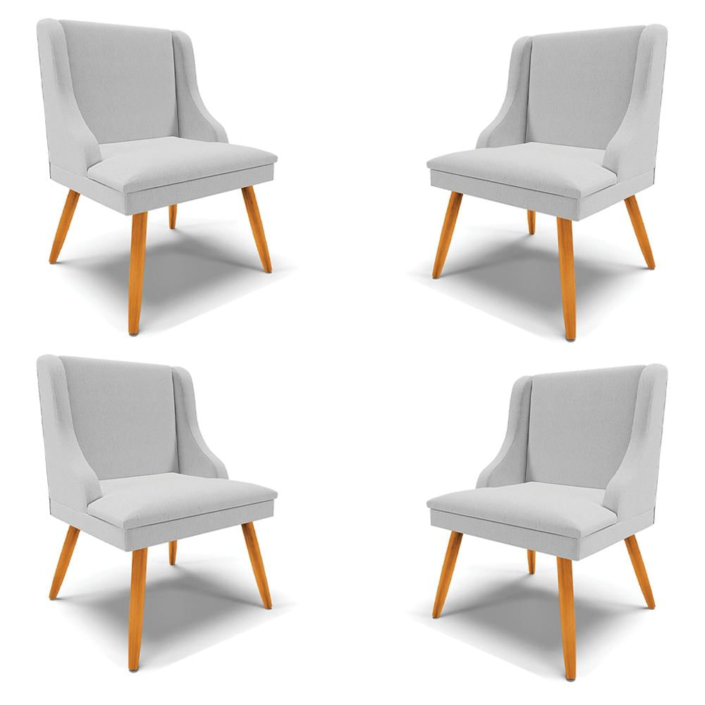 Kit 4 Cadeiras Decorativas Sala de Jantar Pés Palito de Madeira Firenze Linho Cinza/Natural G19 - Gran Belo