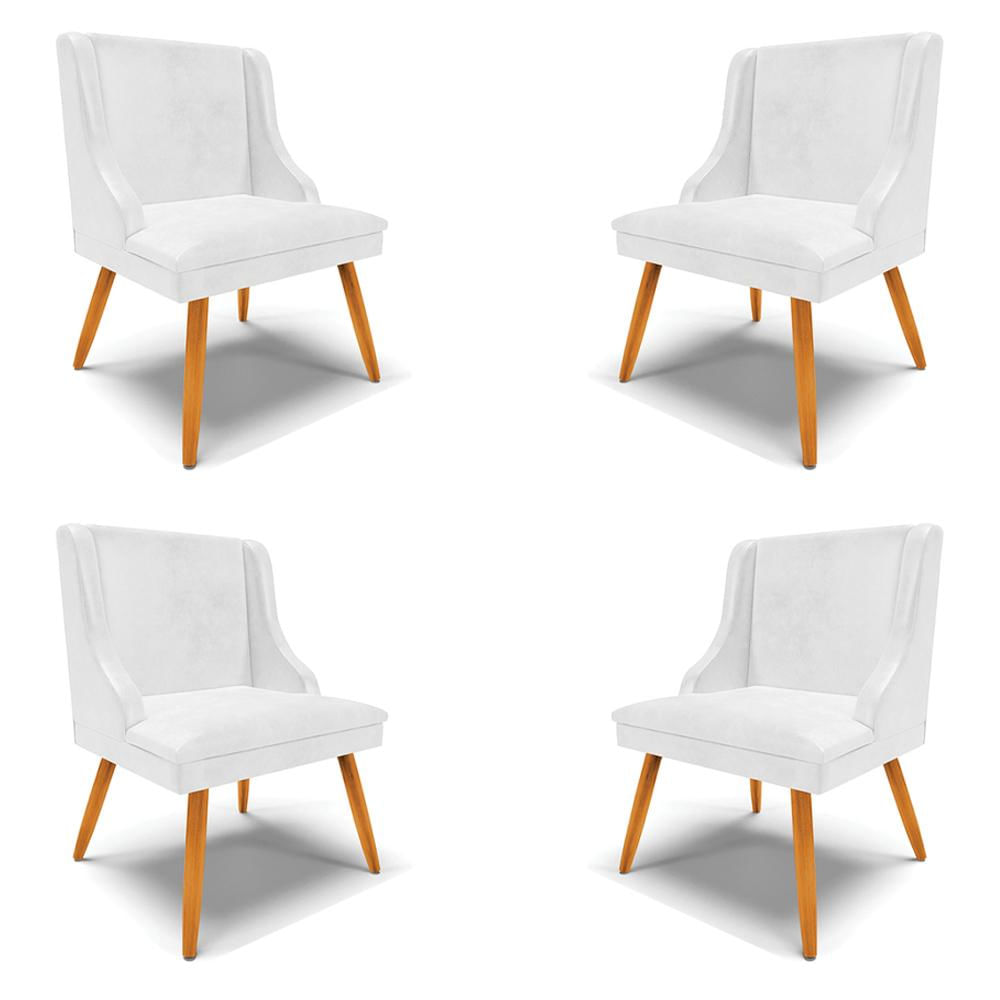 Kit 4 Cadeiras Decorativas Sala de Jantar Pés Palito de Madeira Firenze PU Branco Brilho/Natural G19 - Gran Belo
