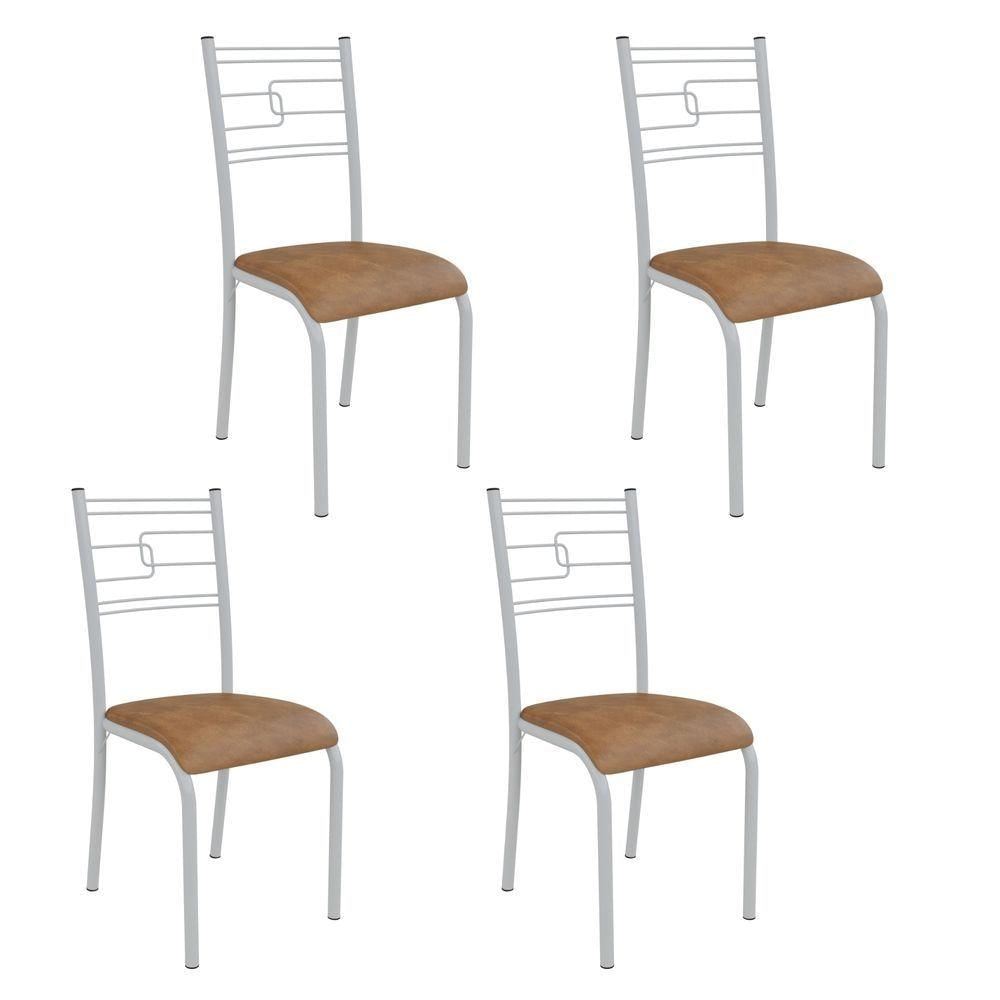 Kit 4 Cadeiras Ella Estrutura Em Aço Branco E Tecido Jambo