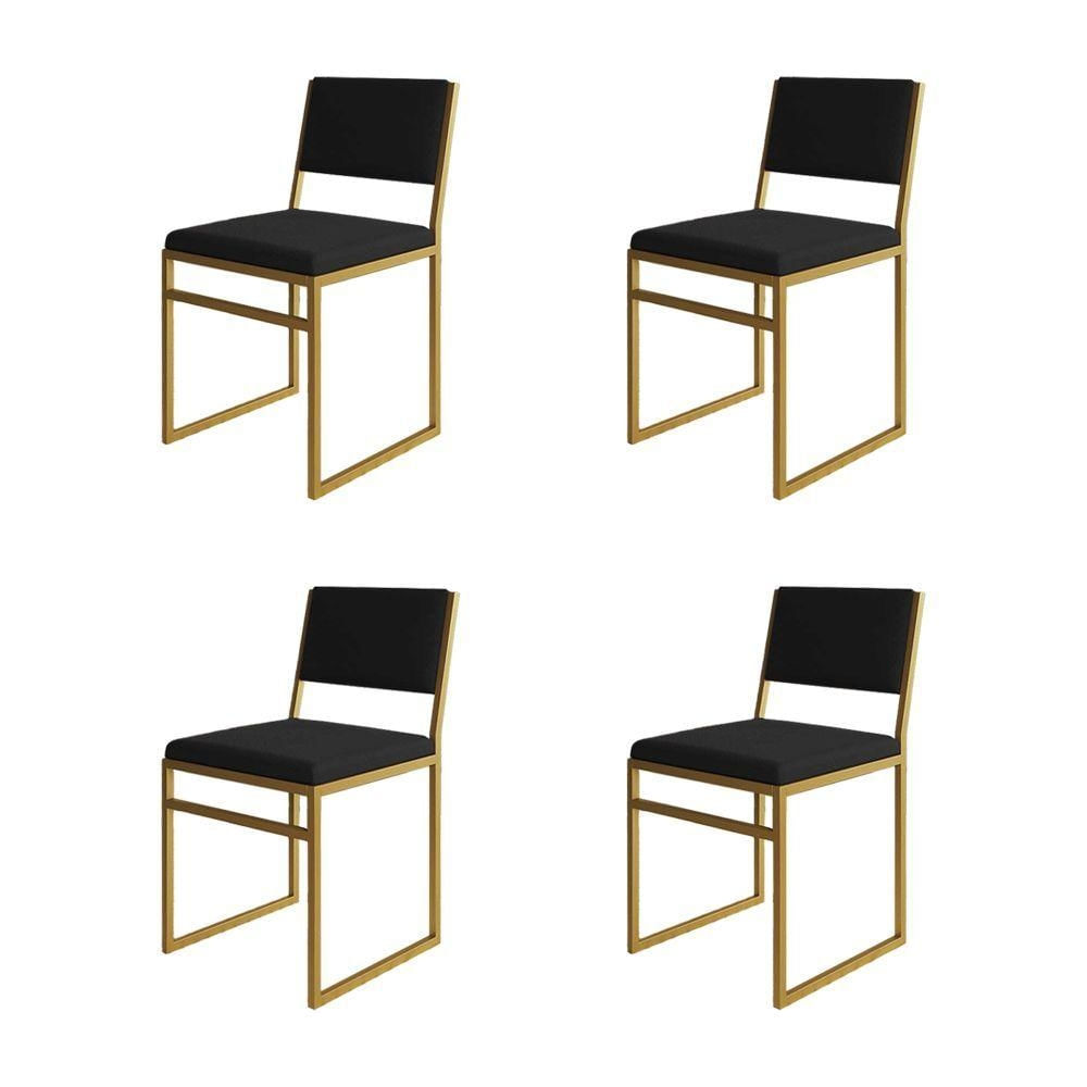 Kit 4 Cadeiras Isa Industrial Veludo Base Dourado Para Mesa Sala Cozinha Decor Home - Dourado-preto