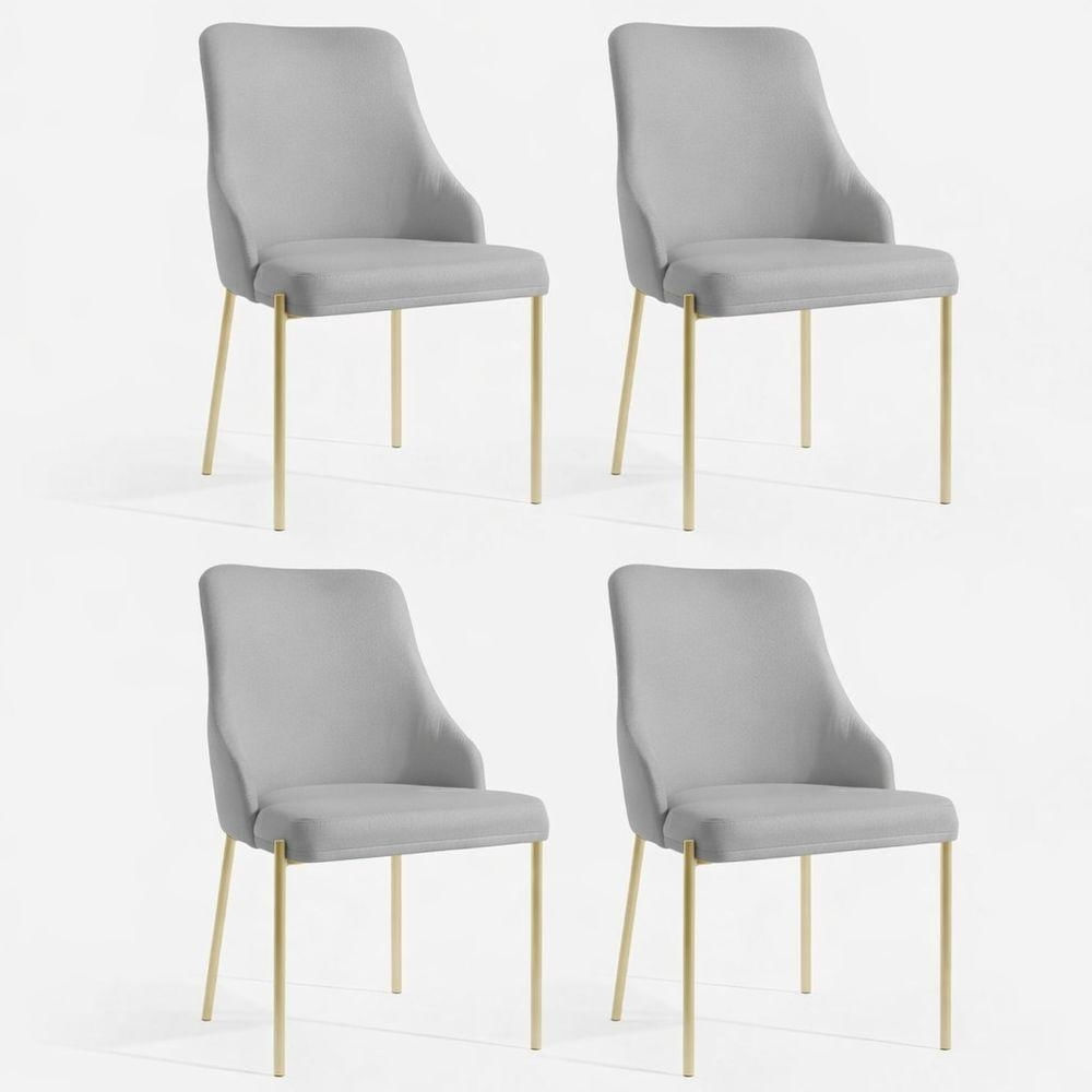 Kit 4 Cadeiras Jantar Aurora Pé Metal Dourado Assento Espuma Base Dourado-linho Chumbo