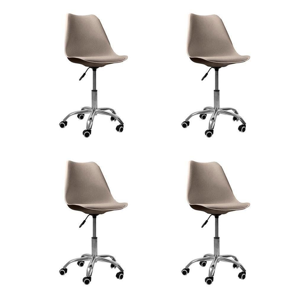 Kit 4 Cadeiras Office Base Cromada Giratória Saarinen Bege