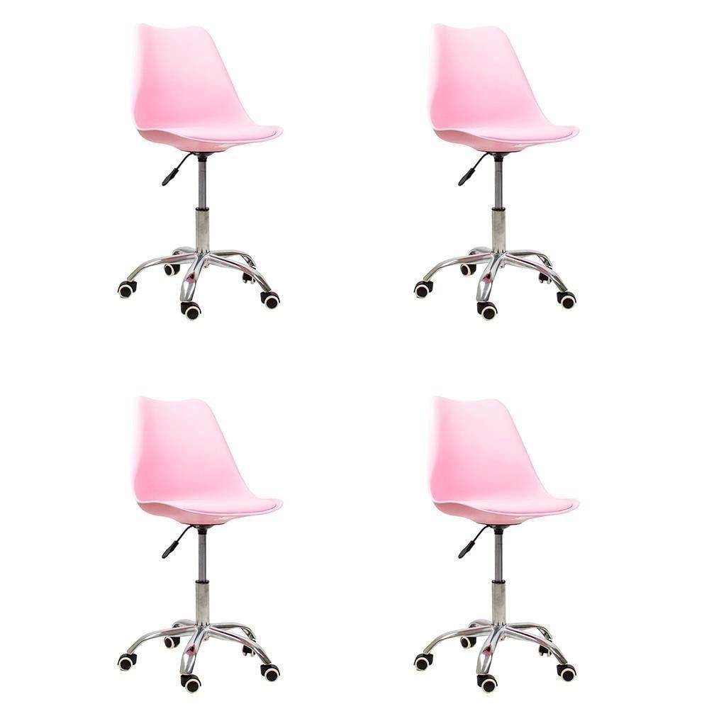 Kit 4 Cadeiras Office Base Cromada Giratória Saarinen Rosa