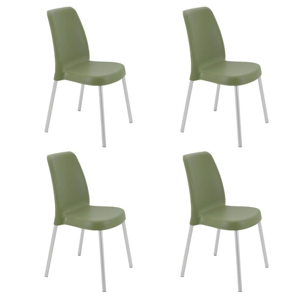 Kit 4 Cadeiras Tramontina Vanda Em Polipropileno Verde Oliva Com Pernas De Alumínio 92053927
