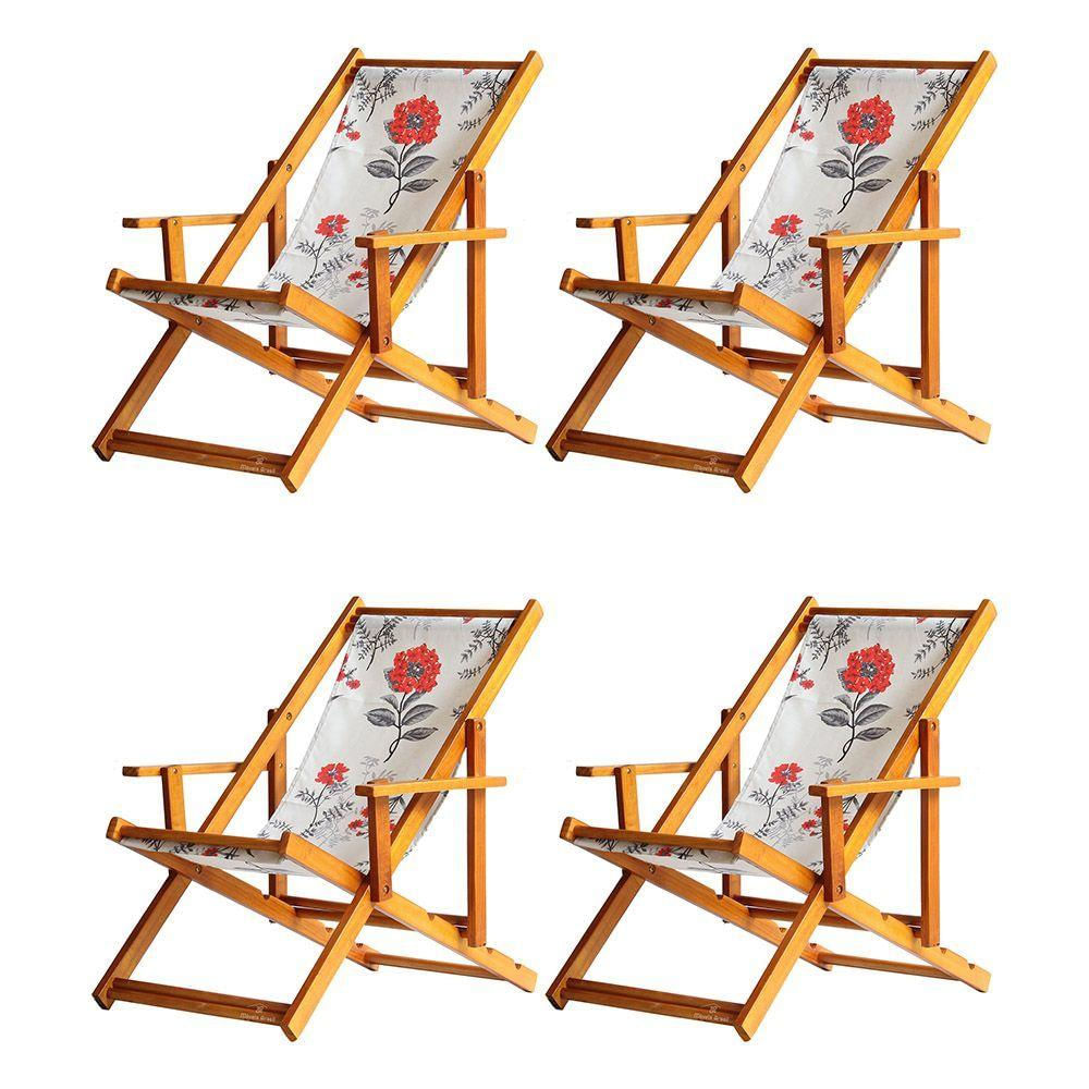 4 ESPREGUIÇADEIRAS ENVERNIZADA MEL C/B Sabe aquele final de tarde que você tanto espera para tirar um descanso merecido? Ou aquela viagem para a praia programada a meses com a família? Pois é, nossas cadeiras espreguiçadeira serve exatamente para esses momentos, com várias opções de cores, os tecidos além de charmosos são hidro-repelentes e se adequam a qualquer ambiente, facilmente removíveis para higienização.Estrutura 100% de madeira maciça de ótima qualidade, a espreguiçadeira é totalmente dobrável e reclinável (4 posições de ângulo), com descanso para braço, sendo possível montar invertida sem o encosto de braço, perfeita para seu lazer em todos os ambientes, esse é o item que definitivamente não pode faltar na vida de quem de fato, quer aproveitar bons momentos! FICHA TÉCNICA DO PRODUTO:04 Níveis de Regulagem de Altura;Tecido Reforçado;Fabricada em Madeira Maciça Pinus;Peso aproximado: 7,5 Kg;Suporta aproximadamente 120 kg;Cor da Madeira: Mel Dimensões aproximadas do Produto:Altura 1: 69 cm;Altura 2: 82 cm;Altura 3: 91 cm;Altura 4: 100 cm;Profundidade: 105 cm. Dimensão aproximada total:Comprimento: 135 cm;Largura: 66 cm; Informações Adicionais:Garantia: 90 dias contra defeitos de fabricação.Acompanha 4 cadeiras Obs. A cor pode variar da foto conforme a tonalidade da madeira e iluminação.. !!