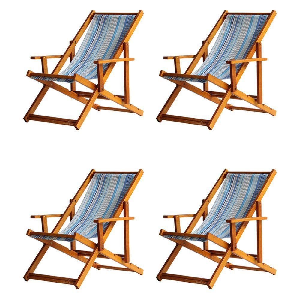 4 ESPREGUIÇADEIRAS ENVERNIZADA MEL C/B Sabe aquele final de tarde que você tanto espera para tirar um descanso merecido? Ou aquela viagem para a praia programada a meses com a família? Pois é, nossas cadeiras espreguiçadeira serve exatamente para esses momentos, com várias opções de cores, os tecidos além de charmosos são hidro-repelentes e se adequam a qualquer ambiente, facilmente removíveis para higienização.Estrutura 100% de madeira maciça de ótima qualidade, a espreguiçadeira é totalmente dobrável e reclinável (4 posições de ângulo), com descanso para braço, sendo possível montar invertida sem o encosto de braço, perfeita para seu lazer em todos os ambientes, esse é o item que definitivamente não pode faltar na vida de quem de fato, quer aproveitar bons momentos! FICHA TÉCNICA DO PRODUTO:04 Níveis de Regulagem de Altura;Tecido Reforçado;Fabricada em Madeira Maciça Pinus;Peso aproximado: 7,5 Kg;Suporta aproximadamente 120 kg;Cor da Madeira: Mel Dimensões aproximadas do Produto:Altura 1: 69 cm;Altura 2: 82 cm;Altura 3: 91 cm;Altura 4: 100 cm;Profundidade: 105 cm. Dimensão aproximada total:Comprimento: 135 cm;Largura: 66 cm; Informações Adicionais:Garantia: 90 dias contra defeitos de fabricação.Acompanha 4 cadeiras Obs. A cor pode variar da foto conforme a tonalidade da madeira e iluminação.. !!