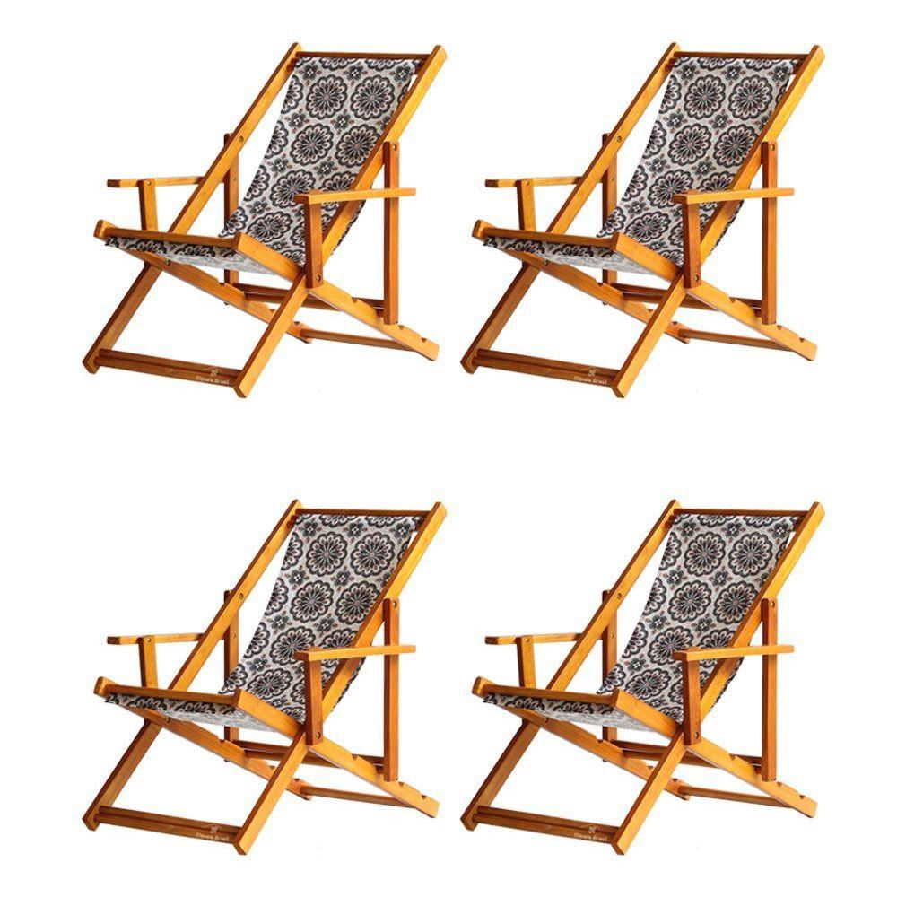 4 ESPREGUIÇADEIRAS ENVERNIZADA MEL C/B Sabe aquele final de tarde que você tanto espera para tirar um descanso merecido? Ou aquela viagem para a praia programada a meses com a família? Pois é, nossas cadeiras espreguiçadeira serve exatamente para esses momentos, com várias opções de cores, os tecidos além de charmosos são hidro-repelentes e se adequam a qualquer ambiente, facilmente removíveis para higienização.Estrutura 100% de madeira maciça de ótima qualidade, a espreguiçadeira é totalmente dobrável e reclinável (4 posições de ângulo), com descanso para braço, sendo possível montar invertida sem o encosto de braço, perfeita para seu lazer em todos os ambientes, esse é o item que definitivamente não pode faltar na vida de quem de fato, quer aproveitar bons momentos! FICHA TÉCNICA DO PRODUTO:04 Níveis de Regulagem de Altura;Tecido Reforçado;Fabricada em Madeira Maciça Pinus;Peso aproximado: 7,5 Kg;Suporta aproximadamente 120 kg;Cor da Madeira: Mel Dimensões aproximadas do Produto:Altura 1: 69 cm;Altura 2: 82 cm;Altura 3: 91 cm;Altura 4: 100 cm;Profundidade: 105 cm. Dimensão aproximada total:Comprimento: 135 cm;Largura: 66 cm; Informações Adicionais:Garantia: 90 dias contra defeitos de fabricação.Acompanha 4 cadeiras Obs. A cor pode variar da foto conforme a tonalidade da madeira e iluminação.. !!