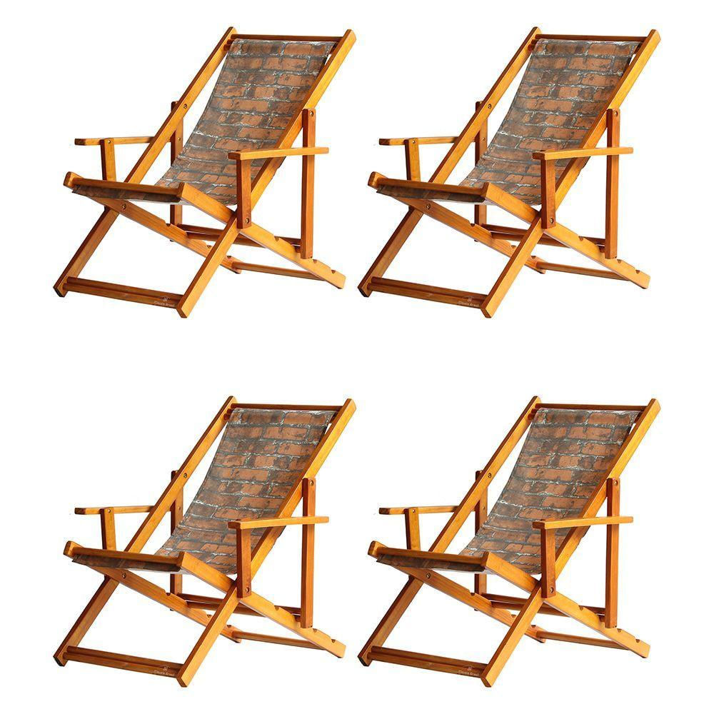 4 ESPREGUIÇADEIRAS ENVERNIZADA MEL C/B Sabe aquele final de tarde que você tanto espera para tirar um descanso merecido? Ou aquela viagem para a praia programada a meses com a família? Pois é, nossas cadeiras espreguiçadeira serve exatamente para esses momentos, com várias opções de cores, os tecidos além de charmosos são hidro-repelentes e se adequam a qualquer ambiente, facilmente removíveis para higienização.Estrutura 100% de madeira maciça de ótima qualidade, a espreguiçadeira é totalmente dobrável e reclinável (4 posições de ângulo), com descanso para braço, sendo possível montar invertida sem o encosto de braço, perfeita para seu lazer em todos os ambientes, esse é o item que definitivamente não pode faltar na vida de quem de fato, quer aproveitar bons momentos! FICHA TÉCNICA DO PRODUTO:04 Níveis de Regulagem de Altura;Tecido Reforçado;Fabricada em Madeira Maciça Pinus;Peso aproximado: 7,5 Kg;Suporta aproximadamente 120 kg;Cor da Madeira: Mel Dimensões aproximadas do Produto:Altura 1: 69 cm;Altura 2: 82 cm;Altura 3: 91 cm;Altura 4: 100 cm;Profundidade: 105 cm. Dimensão aproximada total:Comprimento: 135 cm;Largura: 66 cm; Informações Adicionais:Garantia: 90 dias contra defeitos de fabricação.Acompanha 4 cadeiras Obs. A cor pode variar da foto conforme a tonalidade da madeira e iluminação.. !!