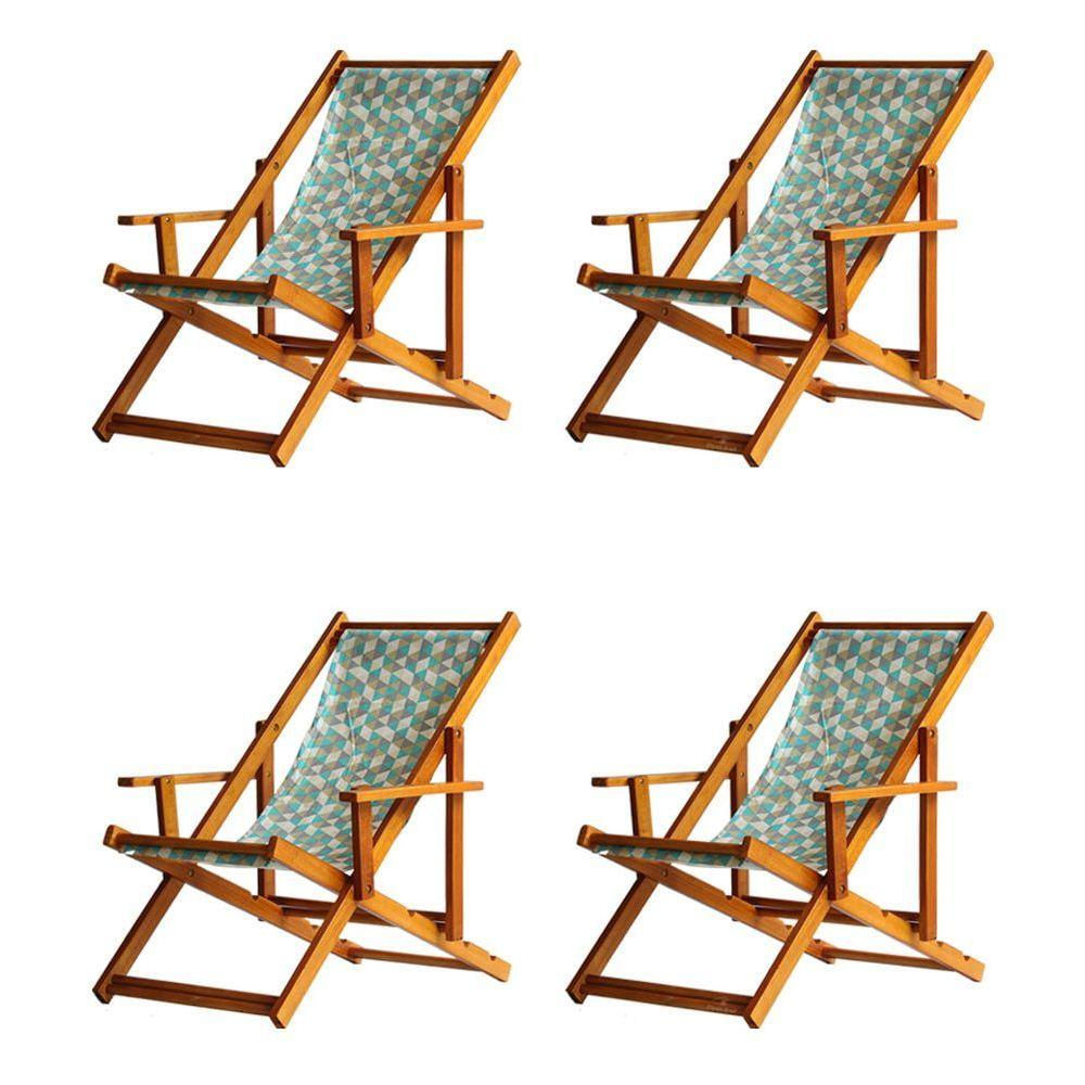 4 ESPREGUIÇADEIRAS ENVERNIZADA MEL C/B Sabe aquele final de tarde que você tanto espera para tirar um descanso merecido? Ou aquela viagem para a praia programada a meses com a família? Pois é, nossas cadeiras espreguiçadeira serve exatamente para esses momentos, com várias opções de cores, os tecidos além de charmosos são hidro-repelentes e se adequam a qualquer ambiente, facilmente removíveis para higienização.Estrutura 100% de madeira maciça de ótima qualidade, a espreguiçadeira é totalmente dobrável e reclinável (4 posições de ângulo), com descanso para braço, sendo possível montar invertida sem o encosto de braço, perfeita para seu lazer em todos os ambientes, esse é o item que definitivamente não pode faltar na vida de quem de fato, quer aproveitar bons momentos! FICHA TÉCNICA DO PRODUTO:04 Níveis de Regulagem de Altura;Tecido Reforçado;Fabricada em Madeira Maciça Pinus;Peso aproximado: 7,5 Kg;Suporta aproximadamente 120 kg;Cor da Madeira: Mel Dimensões aproximadas do Produto:Altura 1: 69 cm;Altura 2: 82 cm;Altura 3: 91 cm;Altura 4: 100 cm;Profundidade: 105 cm. Dimensão aproximada total:Comprimento: 135 cm;Largura: 66 cm; Informações Adicionais:Garantia: 90 dias contra defeitos de fabricação.Acompanha 4 cadeiras Obs. A cor pode variar da foto conforme a tonalidade da madeira e iluminação.. !!