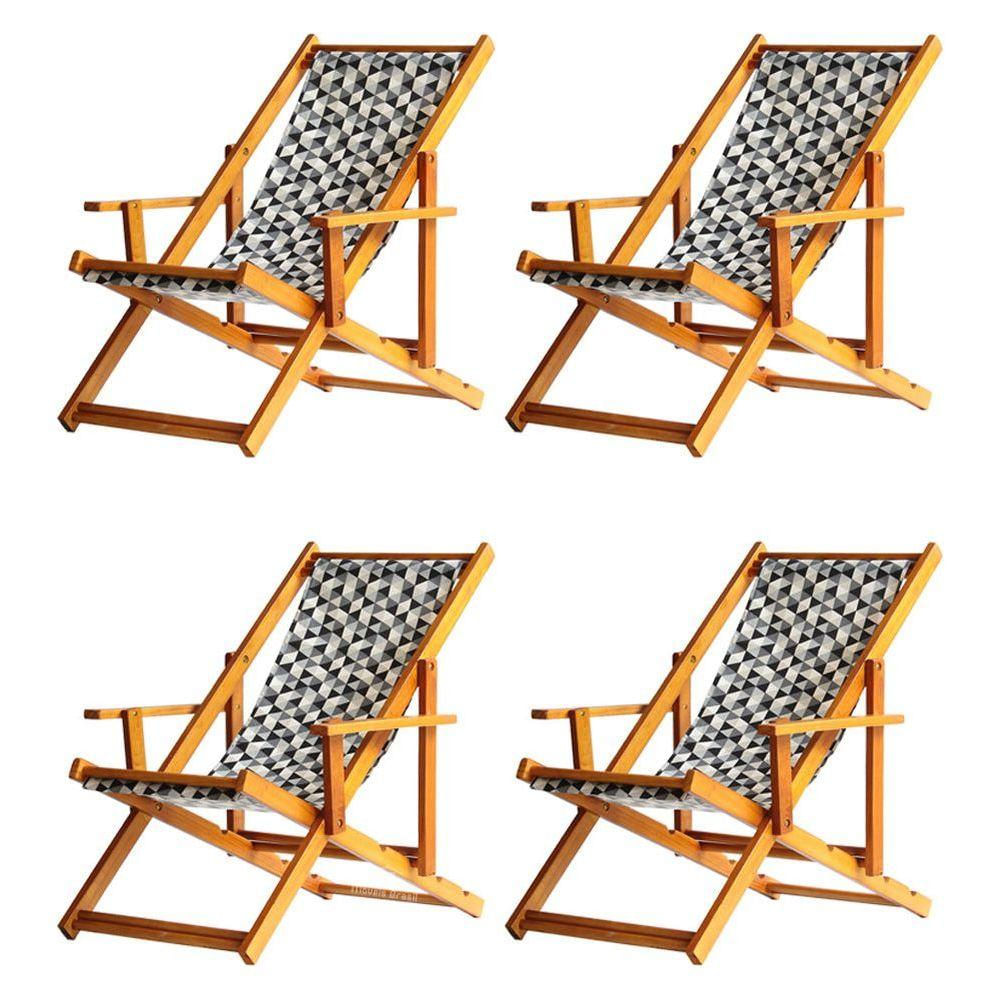 Kit 4 Espreguiçadeira Preguiçosa Dobrável Mel Cb-triang Preto