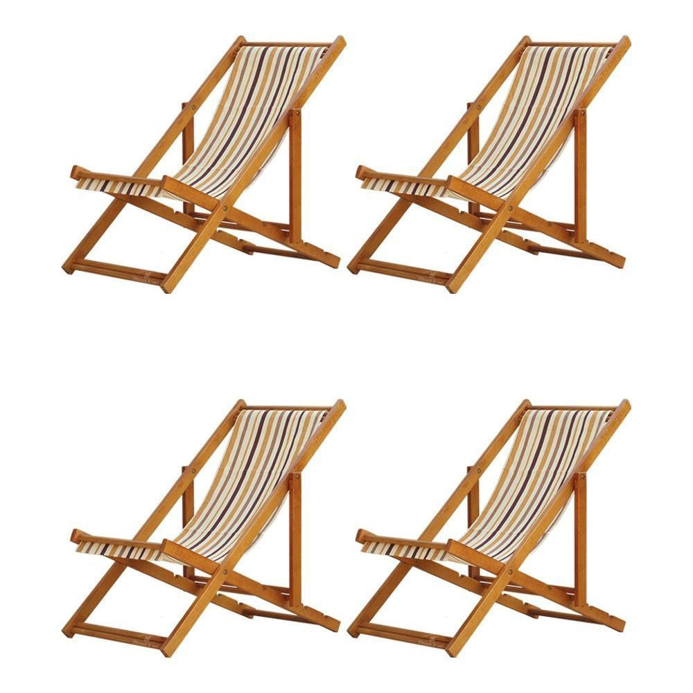 4 ESPREGUIÇADEIRAS ENVERNIZADA MEL S/B Sabe aquele final de tarde que você tanto espera para tirar um descanso merecido? Ou aquela viagem para a praia programada a meses com a família? Pois é, nossas cadeiras espreguiçadeira serve exatamente para esses momentos, com várias opções de cores, os tecidos além de charmosos são hidro-repelentes e se adequam a qualquer ambiente, facilmente removíveis para higienização.Estrutura 100% de madeira maciça e verniz especial, que garante sua qualidade e durabilidade, a espreguiçadeira é totalmente dobrável e reclinável (4 posições de ângulo), perfeita para seu lazer em todos os ambientes, seja ele externo ou interno, esse é o item que definitivamente não pode faltar na vida de quem de fato, quer aproveitar bons momentos! FICHA TÉCNICA DO PRODUTO:04 Níveis de Regulagem de Altura;Tecido Reforçado;Fabricada em Madeira Maciça Pinus;Peso aproximado: 7,5 Kg;Suporta aproximadamente 120 kg;Cor da Madeira: Mel;Acabamento: Envernizada Dimensões aproximadas do Produto:Altura 1: 69 cm;Altura 2: 82 cm;Altura 3: 91 cm;Altura 4: 100 cm;Profundidade: 105 cm. Dimensão aproximada total:Comprimento: 135 cm;Largura: 60 cm; Informações Adicionais:Garantia: 90 dias contra defeitos de fabricação.Acompanha 4 cadeiras Obs. A cor pode variar da foto conforme a tonalidade da madeira e iluminação..