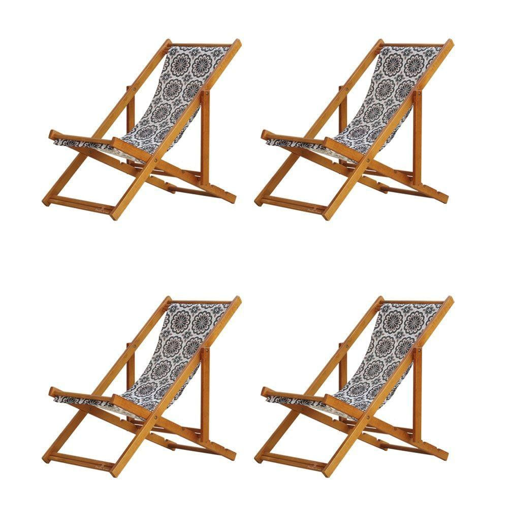 4 ESPREGUIÇADEIRAS ENVERNIZADA MEL S/B Sabe aquele final de tarde que você tanto espera para tirar um descanso merecido? Ou aquela viagem para a praia programada a meses com a família? Pois é, nossas cadeiras espreguiçadeira serve exatamente para esses momentos, com várias opções de cores, os tecidos além de charmosos são hidro-repelentes e se adequam a qualquer ambiente, facilmente removíveis para higienização.Estrutura 100% de madeira maciça e verniz especial, que garante sua qualidade e durabilidade, a espreguiçadeira é totalmente dobrável e reclinável (4 posições de ângulo), perfeita para seu lazer em todos os ambientes, seja ele externo ou interno, esse é o item que definitivamente não pode faltar na vida de quem de fato, quer aproveitar bons momentos! FICHA TÉCNICA DO PRODUTO:04 Níveis de Regulagem de Altura;Tecido Reforçado;Fabricada em Madeira Maciça Pinus;Peso aproximado: 7,5 Kg;Suporta aproximadamente 120 kg;Cor da Madeira: Mel;Acabamento: Envernizada Dimensões aproximadas do Produto:Altura 1: 69 cm;Altura 2: 82 cm;Altura 3: 91 cm;Altura 4: 100 cm;Profundidade: 105 cm. Dimensão aproximada total:Comprimento: 135 cm;Largura: 60 cm; Informações Adicionais:Garantia: 90 dias contra defeitos de fabricação.Acompanha 4 cadeiras Obs. A cor pode variar da foto conforme a tonalidade da madeira e iluminação..