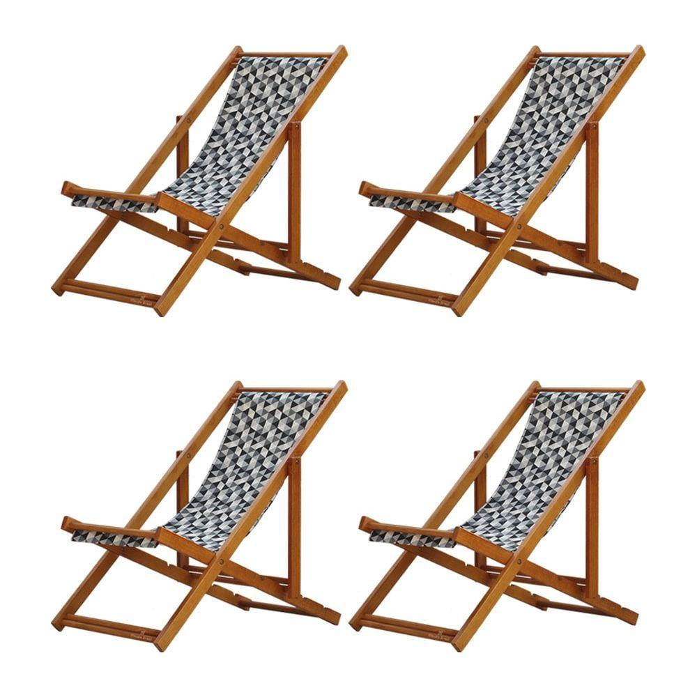 Kit 4 Espreguiçadeira Preguiçosa Dobrável Mel Sb-triang Preto