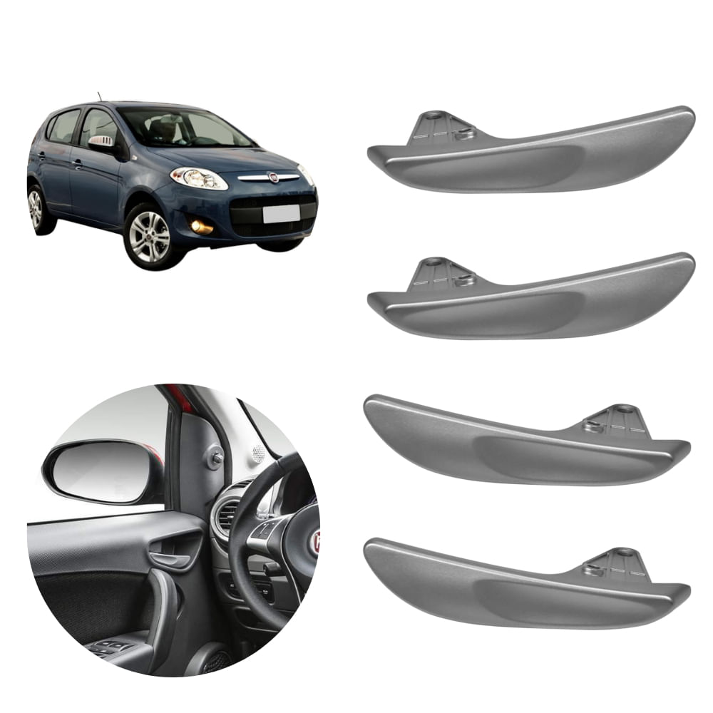 CONTEÚDO DA EMBALAGEM 01 Gatilho interno da Maçaneta Prata – Porta Dianteira – Lado Esquerdo 01 Gatilho interno da Maçaneta Prata – Porta Dianteira – Lado Direito 01 Gatilho interno da Maçaneta Prata – Porta Traseira – Lado Esquerdo 01 Gatilho interno da Maçaneta Prata – Porta Traseira – Lado Direito -
